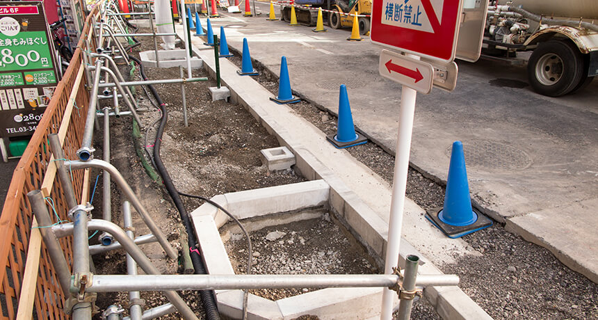 地中配線や電線管の埋設、マンホール・ピットの設置、基礎工事や架台工事など、電気設備に伴う